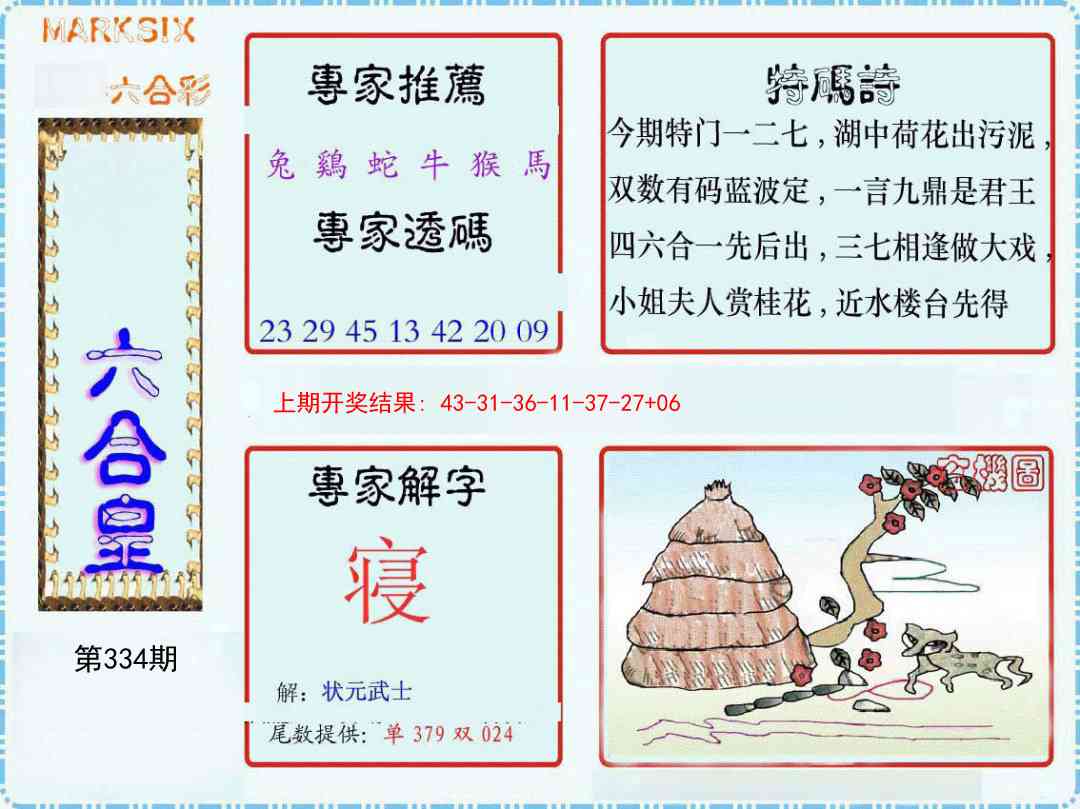 334期: 澳门六合皇彩圖信封【六合抓码】每期自动更新