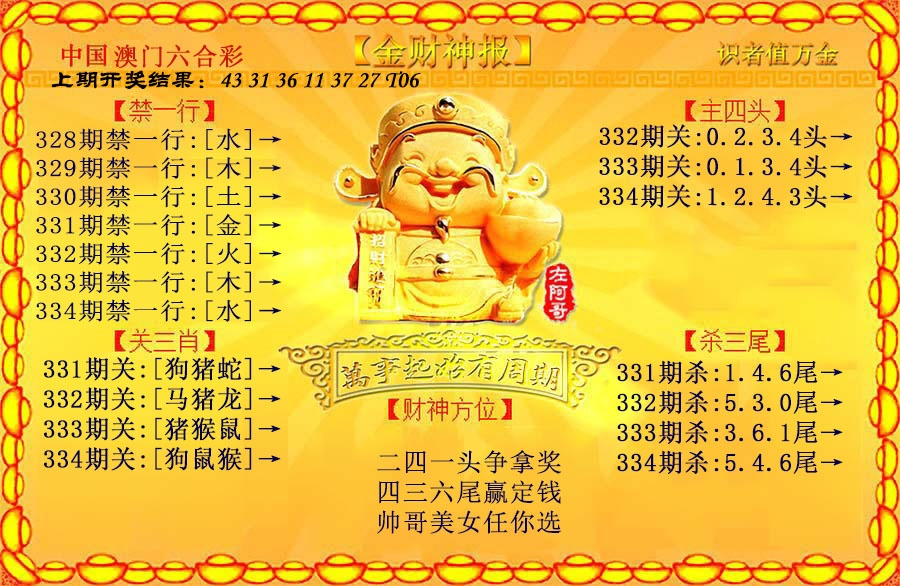 334期:澳门六合皇彩圖信封【金财神报】每期自动更新